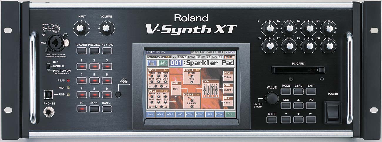 2004 年被 MIPA 授予“年度合成器”奖项。 Roland 革命性的 V-Synth 现在推出了便携产品。新的 V-Synth XT 添加了更多引人入胜的功能 - 以及足够的合成效果和音频处理功能。它有效地编排了多个合成种类,包括 V-Synth 著名的多功能音频合成引擎,加上模拟合成器部分,声乐部分和再现经典的 D-50 。增加了功能强大的 COSM 效果,外接音频处理,彩色触摸显示屏, 8 个通用编辑旋钮,还有机架 / 桌面音源设备的重新定义技术。