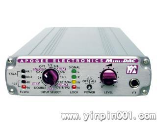便携式高质数模转换器Apogee 吸取了之前成功产品 AD-1000 的优点,同时更加入了新一代高质数模转换技术,尽管是一款移动设备, Mini-DAC 强大的功能仍然可以满足录音室高质量专业模数转换要求。 Digital-Thru 模式音频接口可将不具备 USB 接口的相关设备连接至计算机如果您经常需要处理数字信号,那么您可能要面对各种不同的数据传输端口。 Mini-DAC 可通过 USB 接口直接连接电脑和 DAW 工作站。同时 Apogee 公司还通过 Digital-Thru 模式极大的扩展了 Mini-DAC USB 端口的传输能力。您可以通过 Mini-DAC 将不具备 USB 接口的相关设备连接至计算机,在数据传输过程中,设定 Mini-DAC 的输入选择器为“ USB ”,用其连接两声道数字设备诸如 Apogee 的 Mini-Me, Trak2, 以及 Rosetta, 之后再将 Mini-DAC 连接至电脑或 DAW 工作站,这样只需要一台数模转换器就完成的所有的工作,您无需再购买其他硬件设备。高精度备用监听设备你是否正在使用大型调音台来控制监听信号?抑或您的模数转换器要远远优于数模转换器?那么 Mini-DAC 将助您一臂之力。 Mini-DAC 的多功能电平控制以及高清晰度耳机输出功能可以实时监听到录音过程中的信号。并且在 mix down 过程中 Mini-DAC 可为您提供最佳立体声声象以及数字音频的模拟信号。