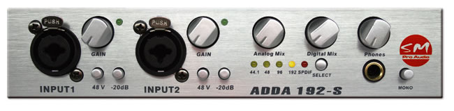 可以在44.1, 48, 88.2, 96, 176.4, 至192kHz采样率下工作,ADDA 192-S还具备极低的数字抖动性能,使其无暇的音质不受外界干扰。设备可以通过内部或外部同步(通过S/PDIF)控制。内置话筒放大器与模拟/数字混音控制旋钮,满足各种监听环境的需求。主卡侬与耳机监听输出信号可用模拟/数字输入电平控制。零延迟硬件直接监听。