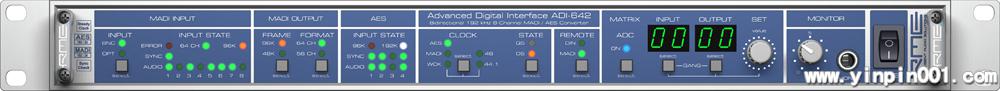 ADI-642是RME最近增加到成功的MADI系列中的一个8通道MADI/AES格式转换器,它作为Hammerfall DSP MADI PCI卡理想的AES/EBU前端,支持192 kHz和24 bit规格。它最优秀的特点是容易使用的72x72路由矩阵,能够分配任何输入通道到所有的独立输出通道,让用户自由分配全部64 MADI和8 AES通道。
