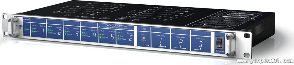 RME的 MADI转换器转换光纤/同轴或同轴/光纤MADI数字音频流。紧凑的19"宽1U高的机箱有六个完全独立的双向转换器。