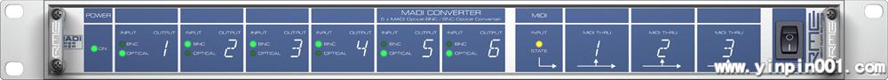 此外,MADI控制器配合有1进3出的MIDI接口,可以复制一个MIDI输入信号到三个MIDI输出上。所以,不再需要外部的MIDI分配器。