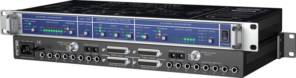 Hammerfall/ADI-8 DS 的联合允许低成本达到兼容DVD的高端录音(8通道/96 kHz) ADI-8 PRO是8通道AD/DA转换器,紧凑的1U 高19" 机架式机箱提供许多杰出的特点,例如智能时钟控制(Intelligent Clock Control)、SyncCheck、SyncAlign、TDIF/ADAT转换、比特分割(Bit Splitter)等。AD和DA电路无论在独立或链接使用时自动操作,最新的24-bit转换和128倍超采样结构提供117 dB动态。ADI-8 PRO是许多用户等待已久的灵活、专业、低价的多通道转换器。