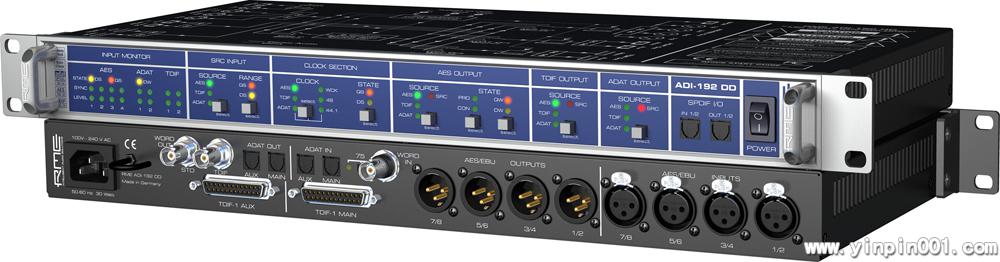 该款ADI-192 DD转换器是由3款支持24比特解析度的8通道格式转换器组成的。其所支持的3种输出格式(ADAT、TDIF和AES)可以通过3种相同的输入格式分别进入。