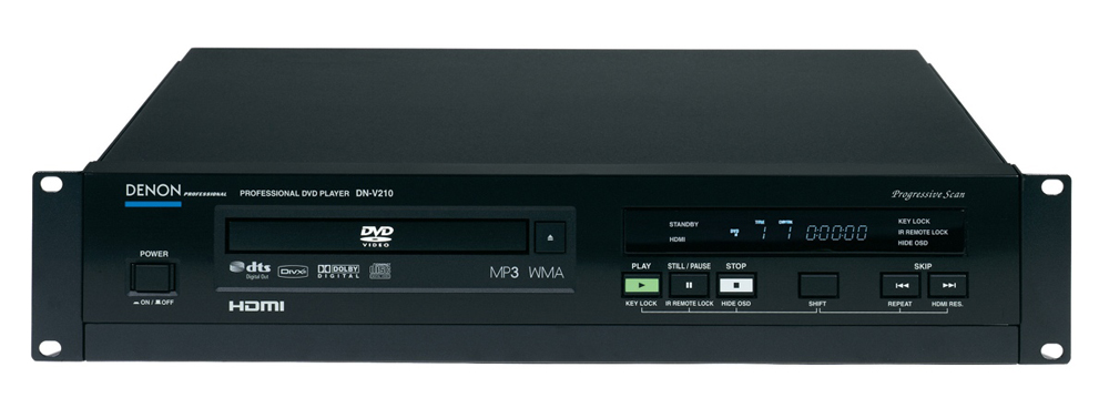 DENON Professional新推出了DN-V210和DN-V310,为CI和专业A/V应用提供了全部标准的功能,同时还具有包括OSD界面隐藏、背景切换、NSTC/PAL制式转换器和各种自动播放和重复模式等高级功能。DN-V310还包括一个RS232串行接口用于提供附加控制和网络化能力。支持 DVD, DVD+R/RW, CD, CD-R/RW, VCD,MP3, WMA, DivX ,JPEG 灯多种格式。
