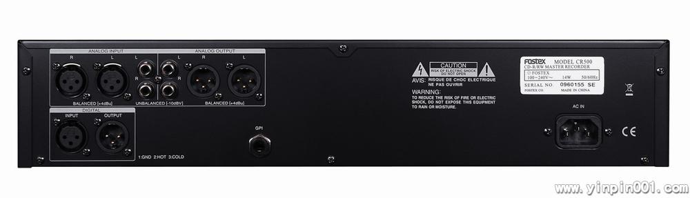 Fostex CR500是新一代拥有母版式录音机和重放设备专业品质特征的CD录音机,但它的价格却并不昂贵。在母板录音方面,CR500在24bit/96kHz时提供世界一流的直接将BWF录制到UDF格式的CD上。文件与PC工作站完全一致,一个简单的“拷贝&粘贴”程序可以代替数据传输的实时音频抓取。此外,CR500对于在标准16bit/48kHz格式的DAT存档十分理想。
