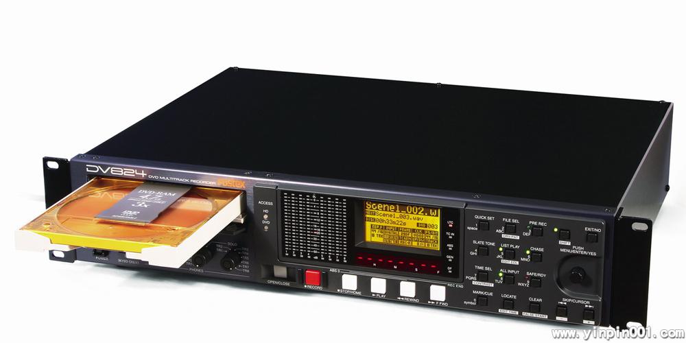 DV824是新一代的单机式多轨录音机。它在一个独特完整的设备上能够将高品质的8轨声音录制到12cm标准格式的DVD-RAM碟片中,体现了当前多轨录音机设计的最前沿技术。它采用模块化设计,可以根据实际使用要求进行配置,可以实现时间码/Bi-Phase锁定功能、IEEE1394接口功能、增加一个内置硬盘以作自动备份等。