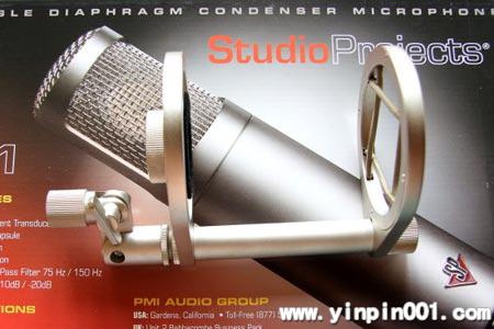 • Studio Project C1使用一片27mm大小、6微米厚的振膜,带FET(场效应管)放大器,等效噪声级为17dB(IEC),灵敏度为14mv/Pa(相当于-37dB),频响20-20Khz,不提供PAD(定值衰减),但在无过载状况下可应付的声压级达131dB。