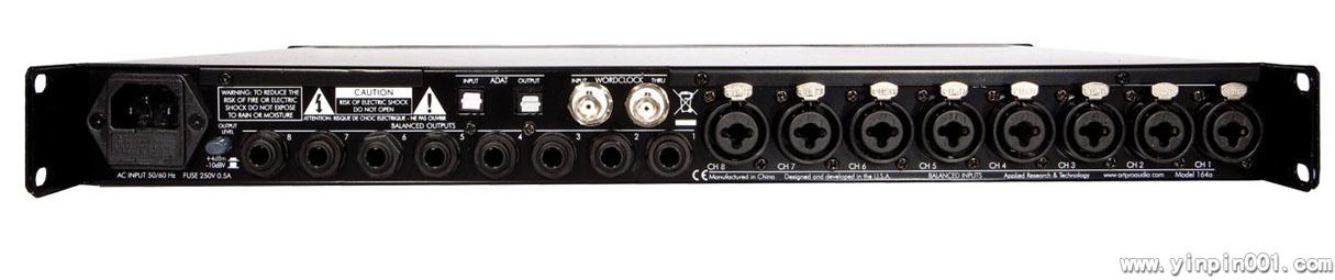 ADAT lite-pipe I/O handles eight channels of 24-bit audio input and output at either 44.1 or 48 kHz sample rates. Wordclock in and thru-puts allow multiple Tubeopto8's to be synced in complex system configurations.