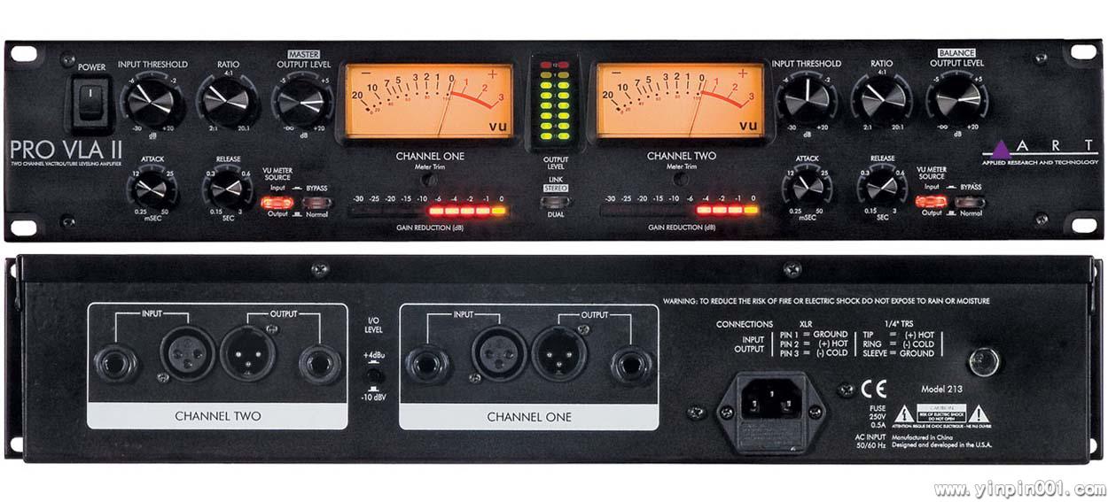 目前提供有更多的音乐音色透明的自然声音和比同类竞争产品的压缩能力,ProVLA II使用的,而不是比较典型的设计压控放大器驱动电平检测电路的光电电子电路。 此压控放大器无设计,在增益级12AT7真空管耦合使得亲VLA第二理想的关键的音频应用的动态控制装置。