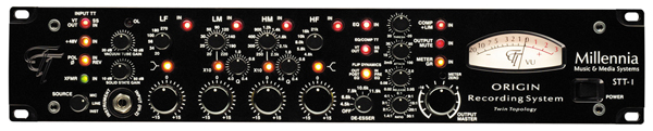 Origin STT-1 是单通道音乐录音系统,提供了真空电子管和晶体管两种模式供选择。系统中包括了话筒放大器、带有增益的线路输入、参数均衡、带增益的乐器高阻输入、压限器和嘶声消除器。所有的这些功能可以用纯A类离散J-FET晶体管电路或者纯A类真空电子管电路来实现,两者间的切换通过一个按钮来完成。Origin还提供了有染色的变压耦合电路与无变压器音频线路之间的切换选择。