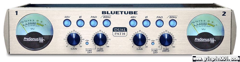 PreSonus BLUETUBE Dual Path(双通道)适合所有类型的话筒,包括电容话筒,动圈话筒和带状话筒,同样也包括键盘,木吉他,电吉他,电贝司等乐器的使用。The BLUETUBE DP 是一个高品质的的前置放大器,它适用于各种工作室,提供广阔的声音和完美的音色。而其售价却是完全的经济实惠。
