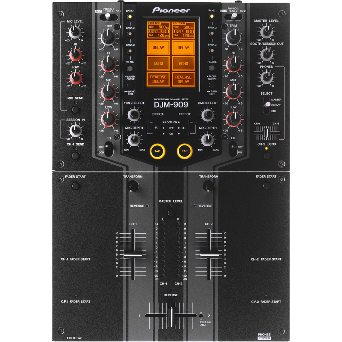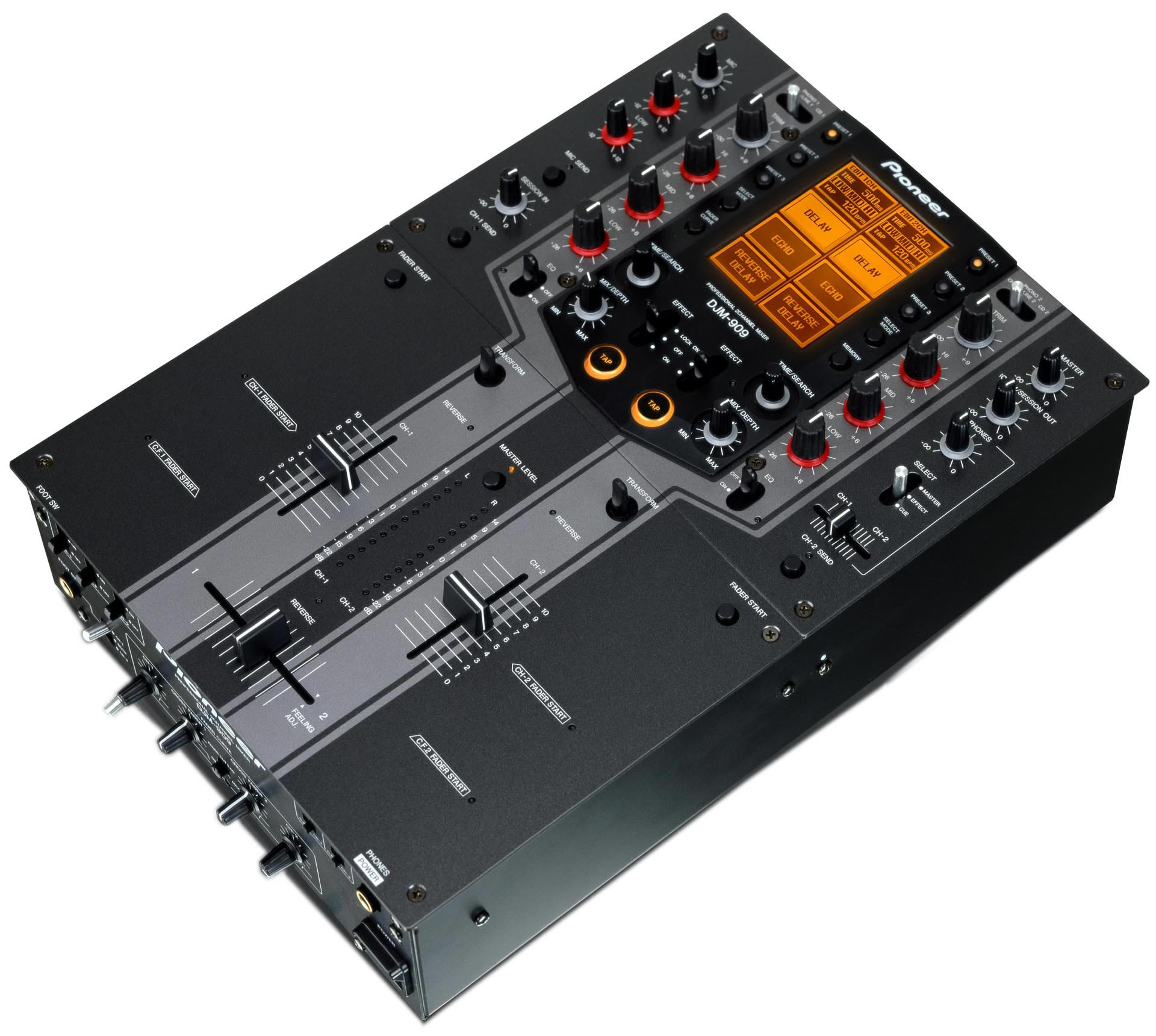 全新DJM-909专业表演对战用刮碟混音器带领hip hop 偶像及刮碟巨星超越现有的音色及创意水平,带出2声道刮碟混音器的新标准。