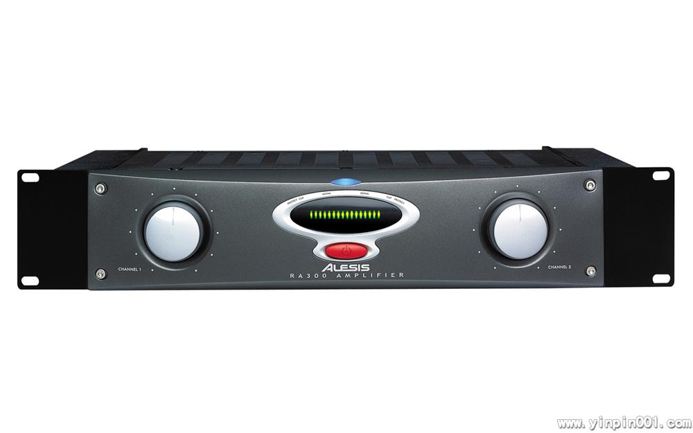 RA300 是一个 2 RU 的功率放大器。它可在 4 欧姆阻抗下每通道提供 150 瓦 RMS ,在 8 欧姆的阻抗下每通道提供 90 瓦的 RMS ,在桥接模式下是 300 瓦的 RMS 。这是 Alesis 为新千年设计的一款及其安静(信噪比大于 105 分贝)有效的放大器,它的外形设计同音质一样十分地抢眼。
