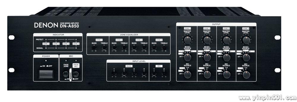 DN-850是用于休息,厅宾馆,俱乐部,酒吧,剧院,医院,办公室等公共场所背景音乐的高品质功放,3U高度,4个音乐源输入,线路1优先,2个话筒输入,第一通道话筒优先。4个通过前置放大的输出,4个接音箱的输出接口。通过购买的附件,DN-850可以兼容70V电压传输的公共广播系统。