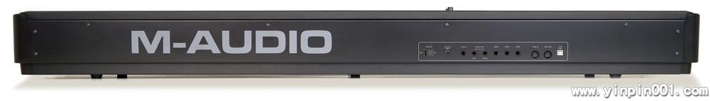 ProKeys 88包括有一个1/4”立体声耳机插座使你能在弹奏或检查声音时不会影响到别人。当然,它是M-Audio的产品有高传真的1/4”平衡式/非平衡式声音输出端并有如20Hz-20kHz的频率响应及108dB 动态范围的指标。