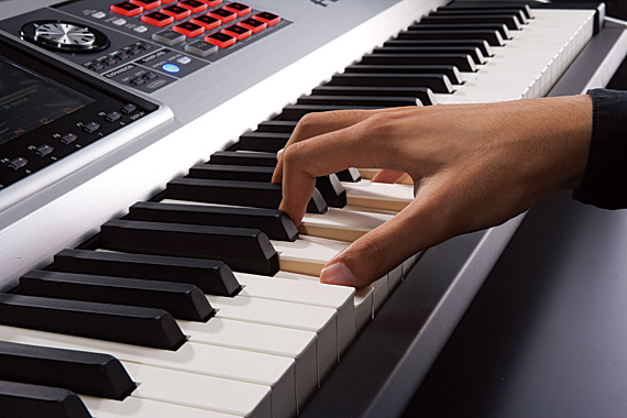 顶级的键盘装置,Fantom-G8具有带配重的PHAⅡ“象牙手感”键盘。