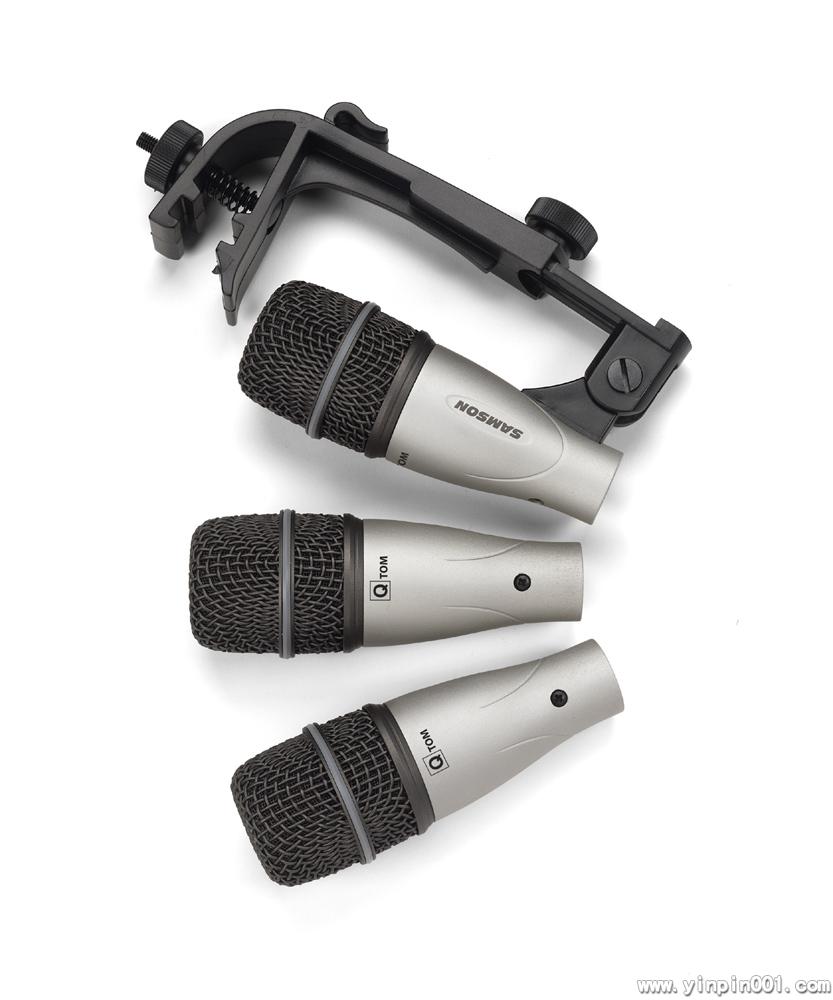 美国Samson公司新推出了由3支Q Tom钕芯动圈话筒组成的套装通鼓拾音设备,能与另外两款Q Snare和Q Kick动圈话筒配合使用,现场演出和录音效果极佳。对于任何打击乐手、鼓手和音响工程师来说,这套设备使用方法非常简单,音质极佳,能符合各种演出预算要求。它是专门为通鼓等乐器拾音而设计,能承受高声压,可靠耐用。此外,它还配有运输盒和快速安装的咪夹和夹线,可与各种话筒支架配合使用。