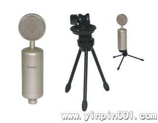 ICON最新推出USB直插话筒,心型拾音指向,包含话筒架与便携袋。适合于录音与网络播客。