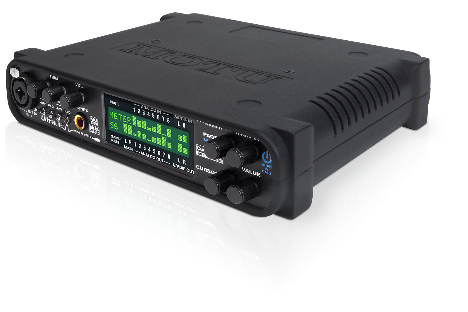 UltraLite 可以通过其火线总线连接至电脑(无须直流电源)实现供电,或者在单独连接混频器时采用直流电源供电。