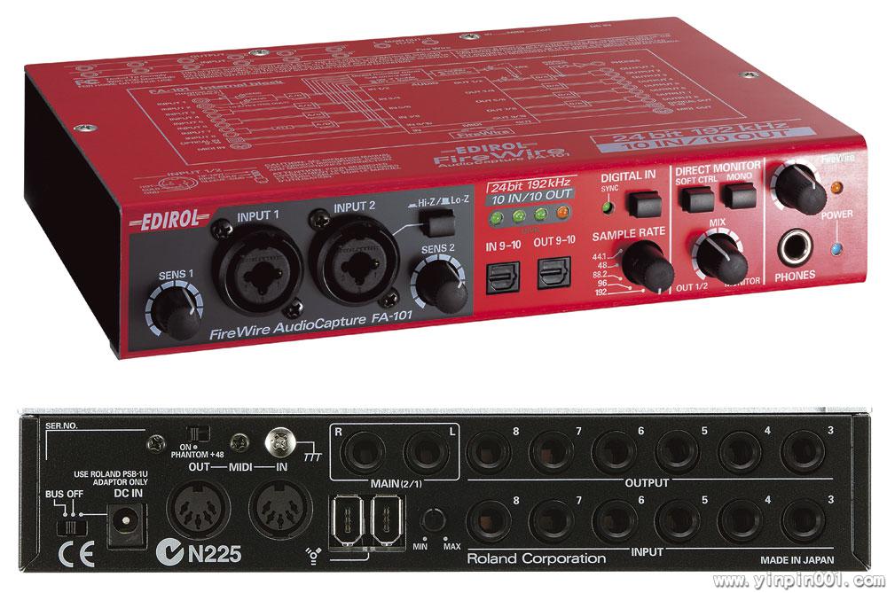 尽管设计小巧,功能却十分强大。在24-bit/96kHz的设定下FA-101可进行10通道的录音及回放,而在24-bit/192kHz的情况下,则可进行多达6轨的同时录音和播放。同时FA-101具有1 进/1出的MIDI接口功能,让计算机作曲、录音更为便利。