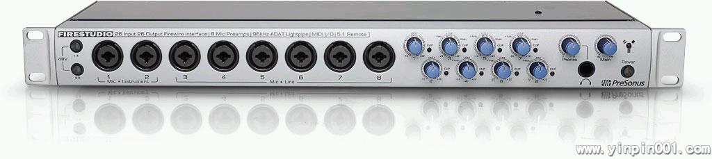 PreSonus FireStudio是26x26 24-bit/96k精度的专业录音系统,带有PreSonus 8个A级话筒前置放大器,16个通道的光纤ADAT输入/输出,S/PDIF和MIDI输入/输出,还有一个控制台-一个36x36x18零延迟混音器/路由器。FireStudio 获奖的录音制作软件,插件程序和鼓循环,你可以立即开始制作音乐。
