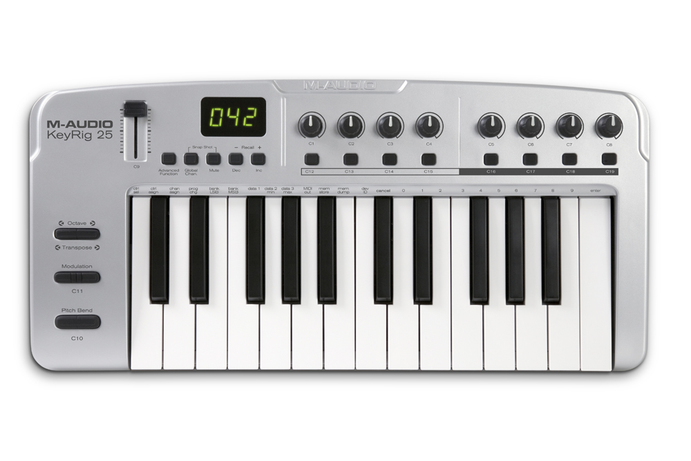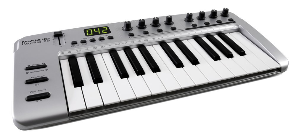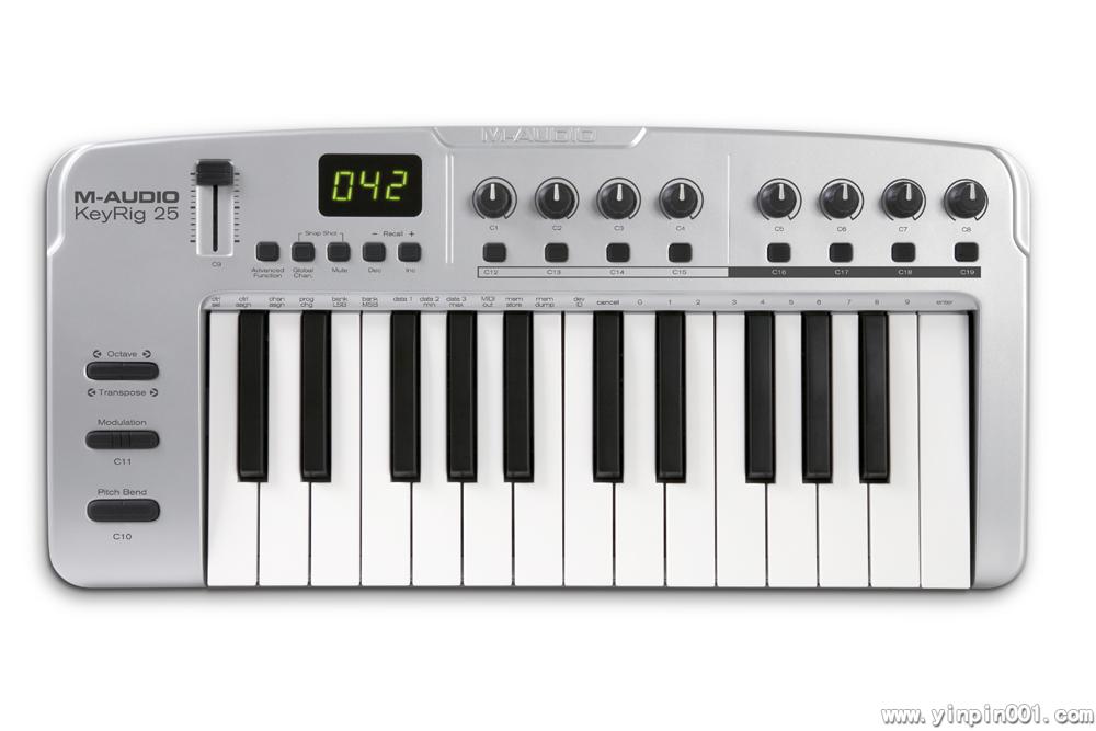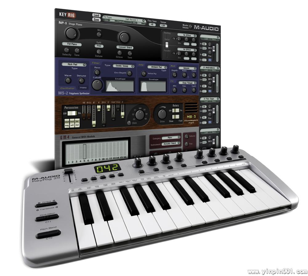 M-Audio KeyRig 25会让你的Mac和PC机变成移动的键盘工作站。25键的USBMIDI键盘加上附增的PC版Key Rig软件使得你基于电脑的作曲工作可以在任何地方展开。你可用通过Pro Tools M-Powered,Ableton Live Lite或者其他的作曲软件演奏Key Rig中的虚拟乐音色。此键盘也可轻松的操控MAC上的Apple Garageband虚拟乐器音色包。