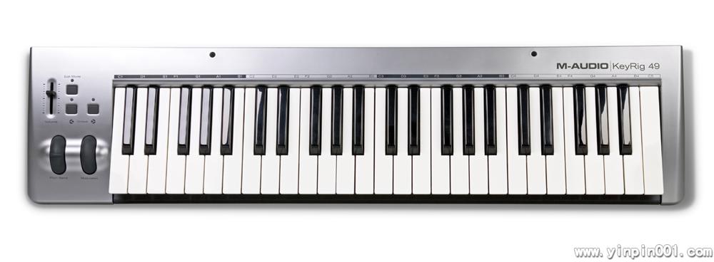 M-Audio KeyRig 49能将你的Mac或PC变为一台强大的键盘工作站。49键键盘,合成器手感的USB MIDI键盘加上获奖的Key Rig软件,KeyRig49让基于电脑的编曲和演出更为容易。KeyRig 49可用于演奏Key Rig软件的虚拟乐器音色,M-Audio工程文件的音频loop和编好的歌曲,苹果公司GarageBand软件,Ableton Live Lite(随包附赠)或其他的音乐制作软件。KeyRig 49键盘还拥有一些专业功能,例如弯音和调制轮,一个可自定义的音量推子,八度+\-按钮以及延音踏板输入。它通过一根USB线供电,可以在Mac OS X或Windows XP系统下既插即用。