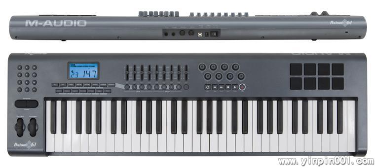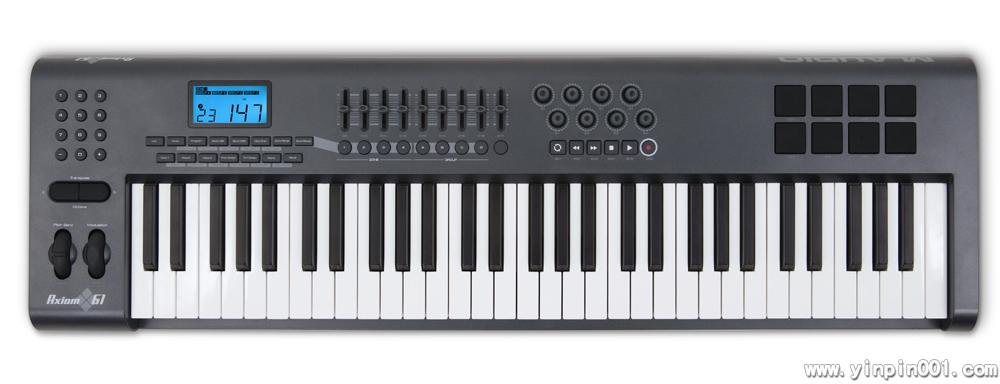 Axiom系列键盘是M-Audio在06年NAMM大展上推出的全新概念键盘产品,Axiom系列键盘首次整合了8个MIDI打击垫,能够非常理想的控制鼓音源。同时具有6个走带控制按钮,8个MIDI旋钮,9个推子,可以方便的控制音频软件。可分配的滚轮和踏板,前面板具有独立的程序按钮,背光LCD可以显示丰富的程序参数。20个固化存储器;可以通过免费的Enigma软件在PC和MAC电脑上存储和编辑无限的预设。