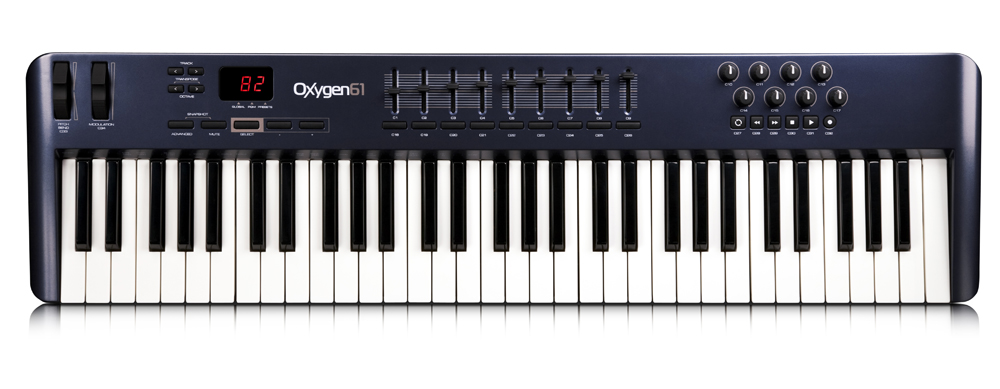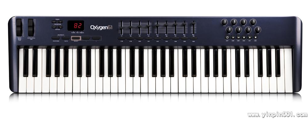M-Audio Oxygen 61 一共有 35 个控制器,包括 9 个推杆, 8 个旋钮以及 15 个按键,通过这些控制器,你可以简单的规划任何的 MIDI 参数来控制你的软件和硬件。 M-Audio Oxygen 61 编辑程序十分的简单,其完整 MIDI 执行能力将可让你随心所欲的控制。 Oxygen 61 控制器可在内置的固定式记忆模组中储存 10 组不同的设定,且其可使用免费的适用于 Mac 及 PC 的 Enigma 软件来管理无限多组的资料库。 Oxygen 61 控制器可使用汇流电源操作。