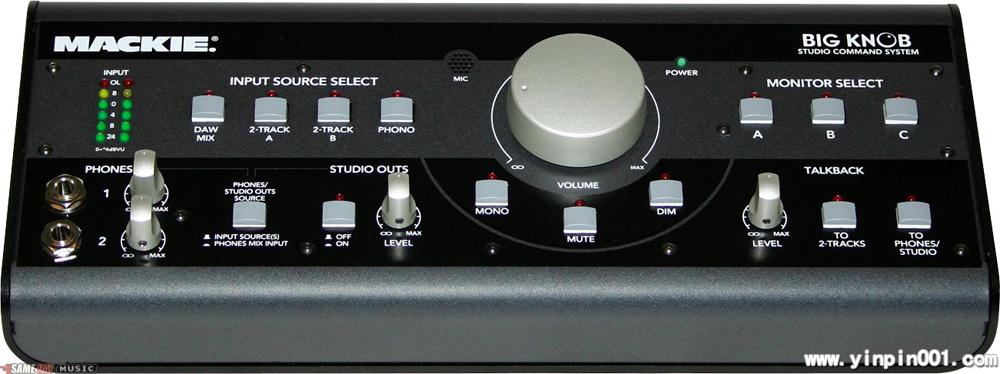 Mackie公司的录音室指令控制器Big Knob,是一款集监听电平、控制监听、切换监听、听源选择、录音室对讲双监听、耳机输出唱机于一体的前置放大器。无论是制作公司、专业录音棚、录音室甚至个人录音工作站都适用。