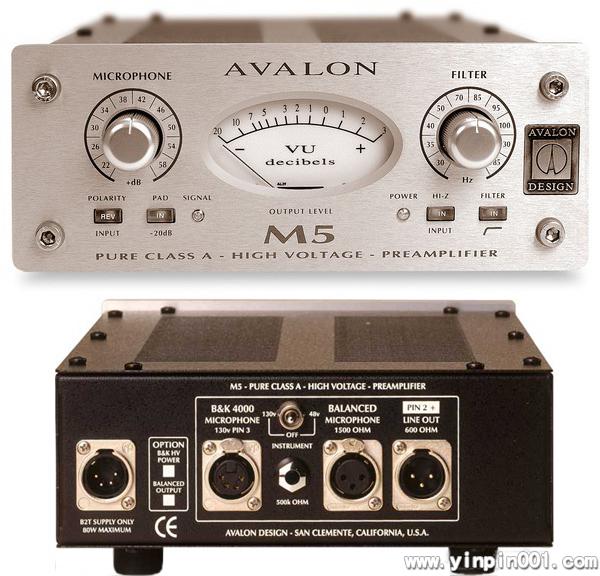 Avalon M5纯甲类话筒前置放大器是当今可见的最音乐的低噪音全功能前置放大器。M5设计用来优化绝对的信号完整性及音乐性能,它以简洁的设计将先进的变压器输入与高性能甲类级联FET和双极性分立元件放大器相结合,以获得无可匹敌的声学特性。M5最适合歌唱、原声乐器、低音直接录音的DI输入、吉他以及键盘。