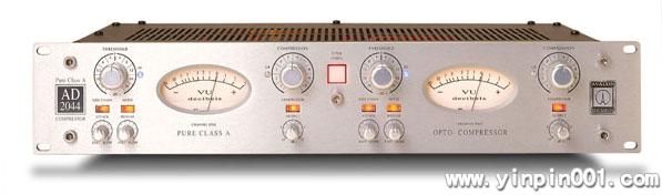 Avalon AD2044 单声道立体声双通道压缩器特征: 100% 不连续,纯 A 级电路。无形的光学控制元件。透明且最小化的信号通道。非常低的噪音: -94dB 。均衡直流电输入和输出。有线的转放旁路。无 VCA 或 IC 的放大器。品质模拟 VU 仪表。频谱限制的旁链输入。易变的冲击、释放、压缩比和阀值。显示增益衰减情况的发光二极管。