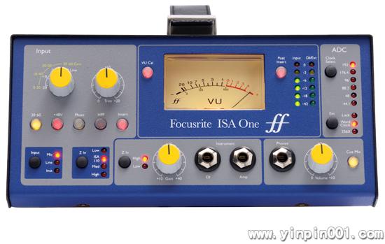 ISA ONE具有源自原型ISA 110模块经典复古的话放,包括Lundahl L1538变压器和Zobel网络(原型110话放是Focusrite传奇Forte调音台每通道的基础)。前置放大器还包括一个线路输入(XLR和TRS插孔)和一个独立的DI通道,连同专用的增益控制,有源或无源阻抗切换,一个TRS输出插孔用于输出至乐器音箱放大器,独立的XLR输出位于背面板。这个设计灵活的独立DI特别适合录音师将通过DI的吉他信号和话筒拾取吉他音箱的信号相混合,也适合专业乐手对吉他和人声录制的需求。一个可变阻抗电路使用户可以在精选的四种输入阻抗预置间切换。原型ISA 110的预置加上三种阻抗设置能完美匹配任何一款话筒,或者用不同的设置使话筒产生创造性的音色。ISA ONE也具有插接点功能,在话放或DI与选配转换卡直接连接外部处理器。幻象供电,相位反转和75Hz,18dB/倍频程高通滤波器也都位于倾斜的前面板。两个通道的独立动线圈指针式可调校准VU电平表和两个六段LED峰值表适合模拟或数字录音媒质;输入电平可以位于插接点的前或后。电平表使用与Digidesign Pro Tools HD系统相同的参考点,可以无缝连接。 ISA ONE的耳机输出具有专用的音量控制,也可以通过背面板的两个TRS输入连接一组外部立体声cue mix(节拍轨,或来自音频接口或现场调音台的立体声混音)监听。可选配高品质立体声模数转换扩展卡(与ISA 430 MkII扩展卡相同),将最尖端的转换技术置于Focusrite品质的模拟电路中。扩展卡可以随时安装,提供两通道动态范围高达119dB的24bit/192kHz模数转换。