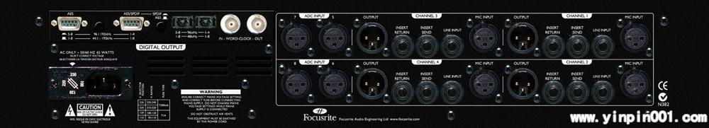 定制的模数转换器“软削波”限幅器 Focusrite为用户定制设计光学电路限幅器,保护模数转换不会过载,需要安装模数转换卡。