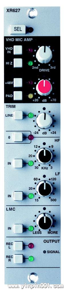 有+20dB到+70dB增益控制的超高带宽的平衡话筒输入话筒放大器上有高阻抗和生相切换开关 XLR线路输入增加了2次和3次可控谐波的可变谐波失真电路。