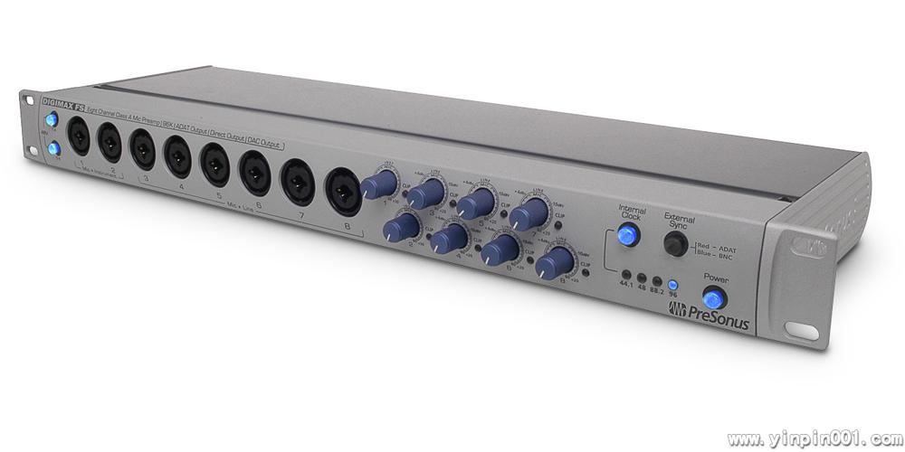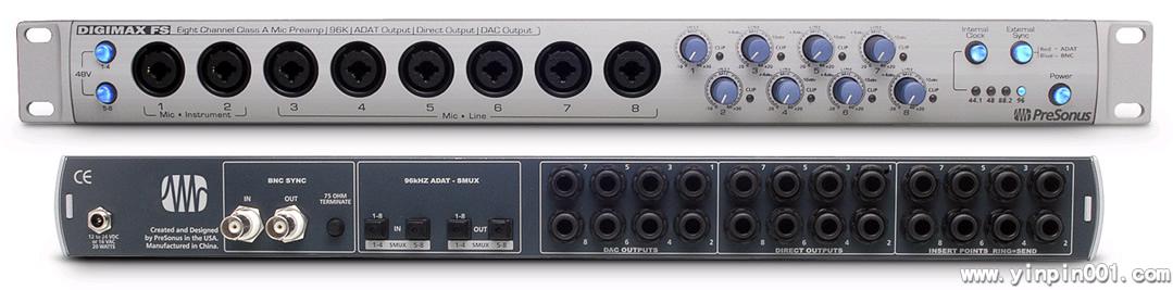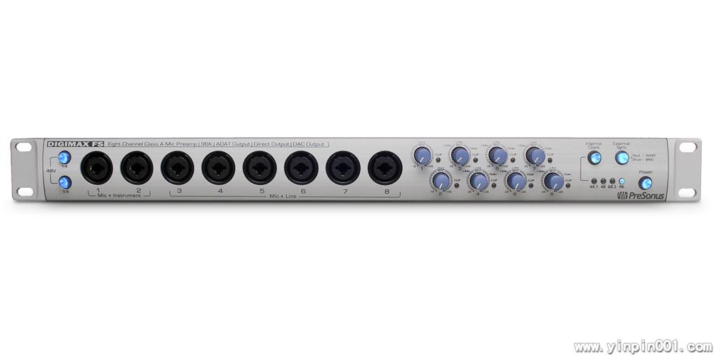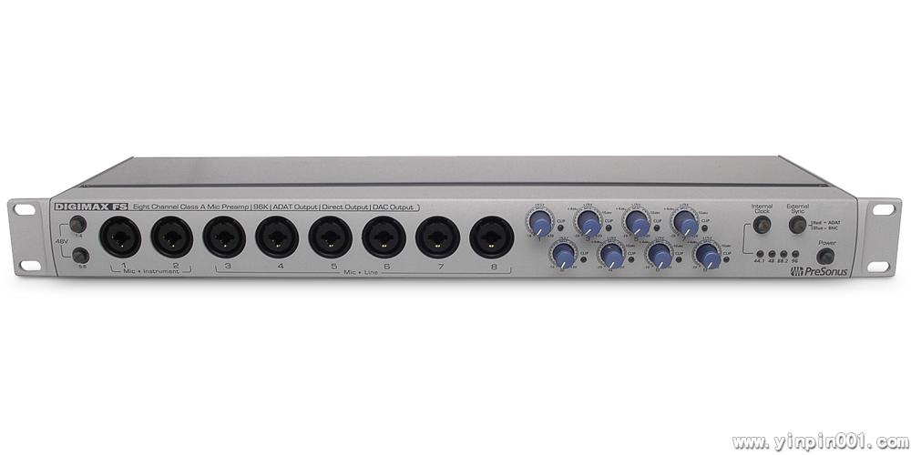 DigiMax FS是PreSonus最新的DigiMax系列产品,一台8通道话筒放大器,8个平衡模拟输出,8个TRS/XLR混合输入,并提供96kHz的ADAT(双SMUX)输入/输出接口。