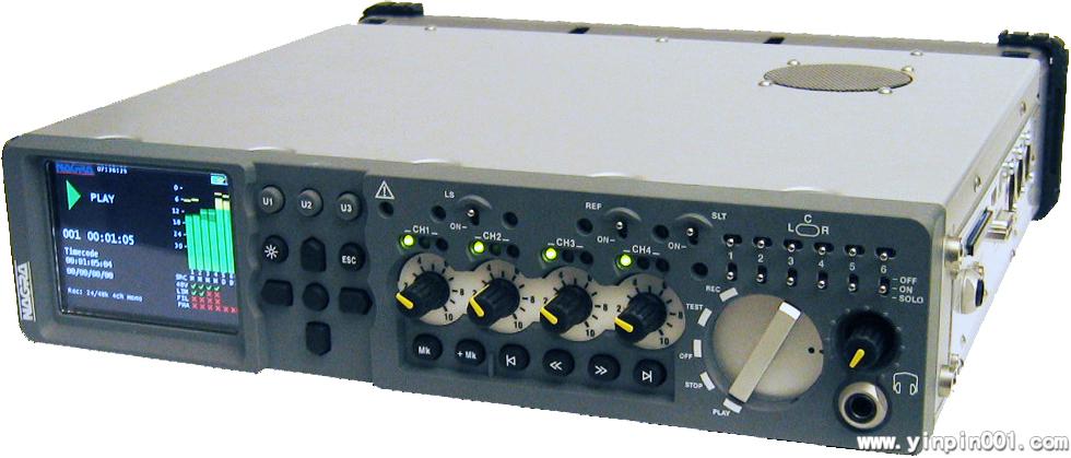 移动CF卡槽在右边面板,边上的LED 显示卡的读写。这边有立体声模拟输出, AES 输出, 第二个耳机接口,额外的 AES 输出在15 针的 Extension 接口上. Start / Stop 是衰减命令终端(触点闭合) ,和其他 NAGRA 录音机一样。还有两个 USB (host / device) 接口.