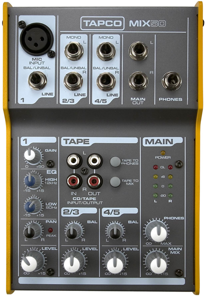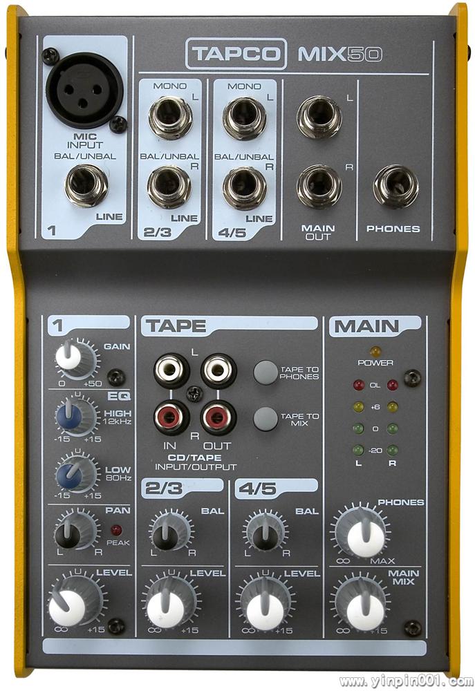 与TAPCO其它所有产品一样,TAPCO Mix系列超小型调音台坚固、结实、耐用、可靠,是您可以信赖的混音伴侣。