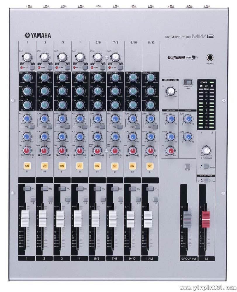 MW12具有MW10所有的USB录音调音功能,但在混音能力、控制能力和灵活性方面更强。大多数都采用12个输入,包括6个平衡XLR输入,4个立体声线路输入通道。MW12也可以安装在架子上,简单控制时,使用长摆幅的音量推子代替MW10的音量旋钮。两个AUX发送器都有单独的音量控制,并且可以在音量控制前或音量控制后设置AUX 1母线,这对建立一个独立的混合监控系统非常有用,同时,MW12也有主发送和接收控制器。