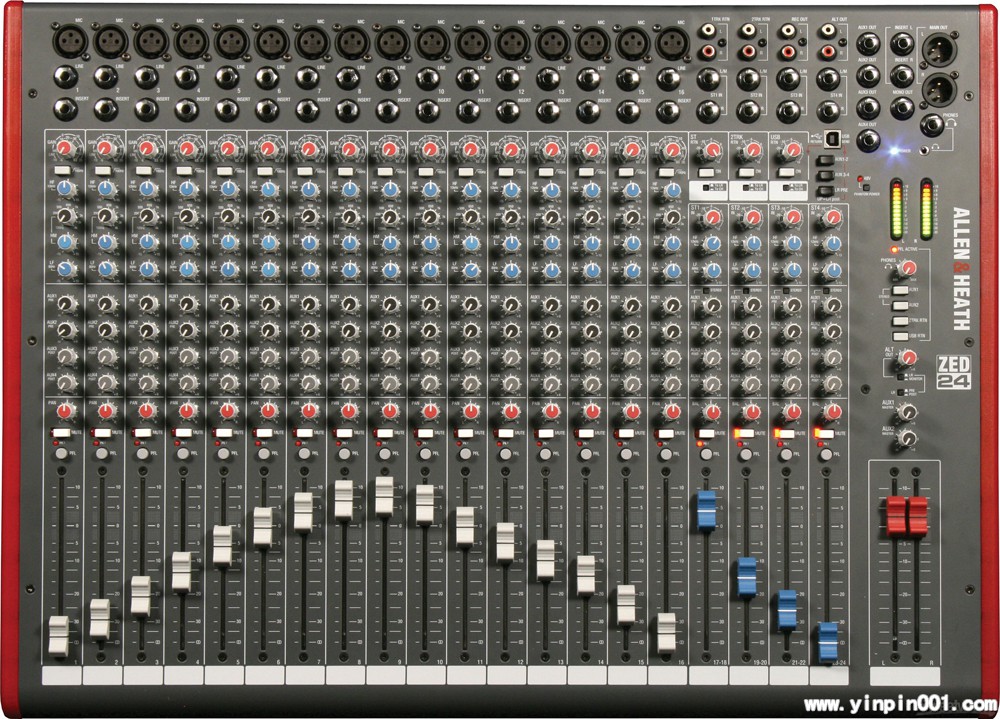 ZED-24比ZED-14多了10路单声道麦克风/线路输入16路麦克风/线路输入;