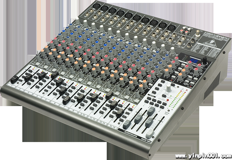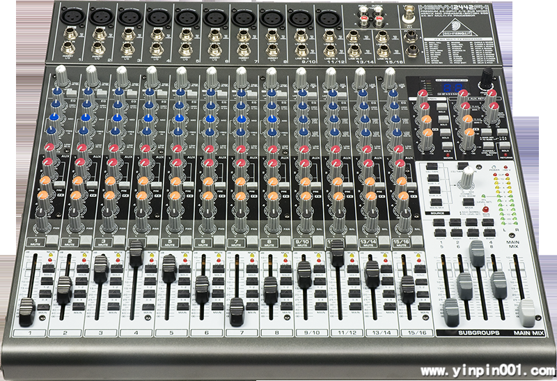 优质 24 声道, 4/2 母线调音台, 配有 XENYX 麦克风前置功放,英国式均衡器, 24比特多重效果器