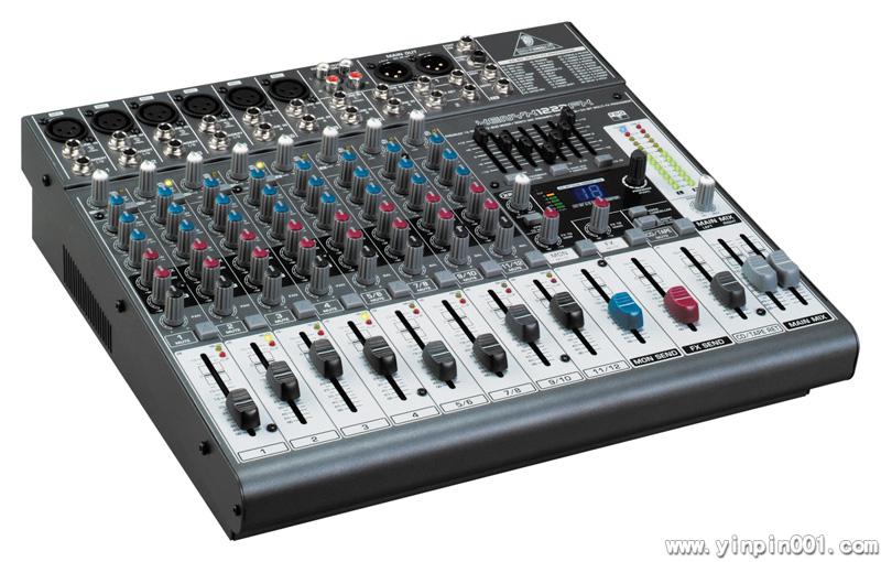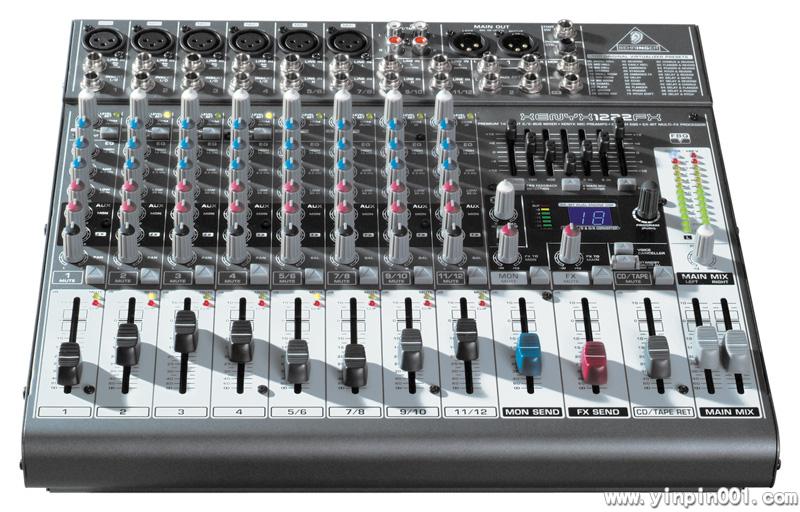 BEHRINGER (百灵达) XENYX 1222FX调音台 XENYX 1222FX 的每声道配有 16 输入端和 2 个辅助传送。另外, 2 个多功能立体声辅助回送使连接灵活性大大提高 。