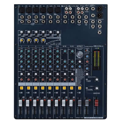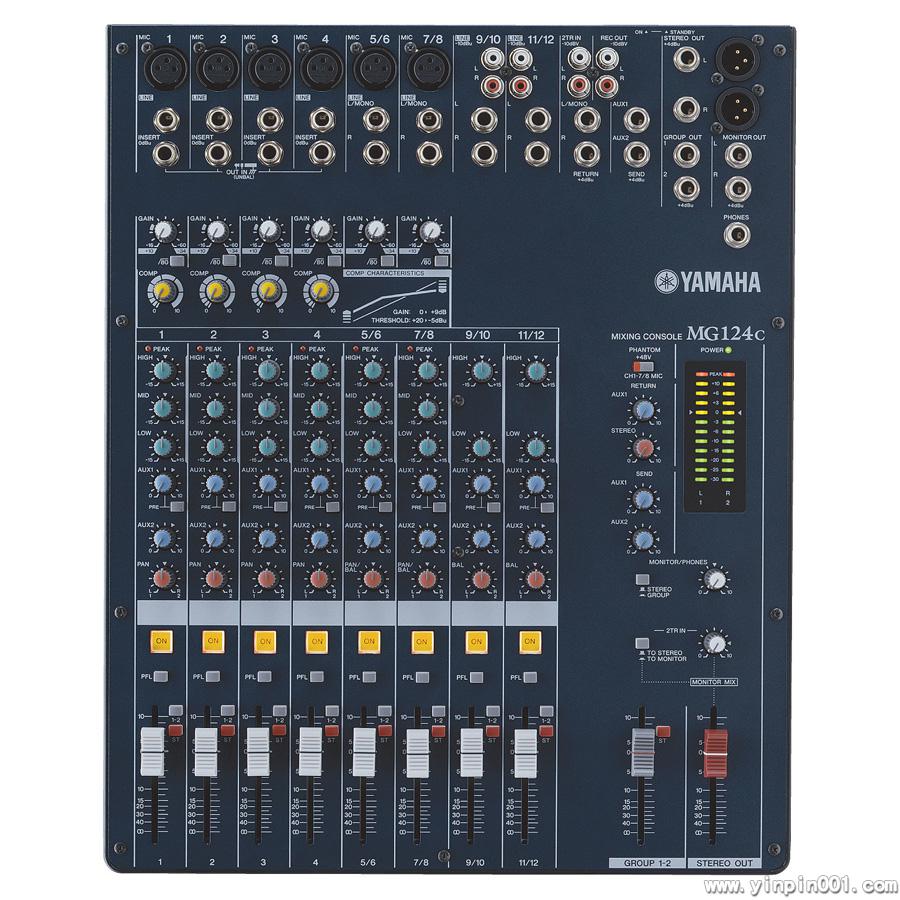 全新的MG系列调音台,比上一代更小更轻便,适合工作室和现场调音,12个通道,4个辅助通道,6个XLR话筒接口可提供幻相供电,全部均为高品质的 Neutrik接口。前4个话筒通道内置压缩器,所有通道都带3段EQ和高通滤波。每个推子上面带有背光的ON按钮,可打开/关闭通道。除此之外还带有 12段的电平表。
