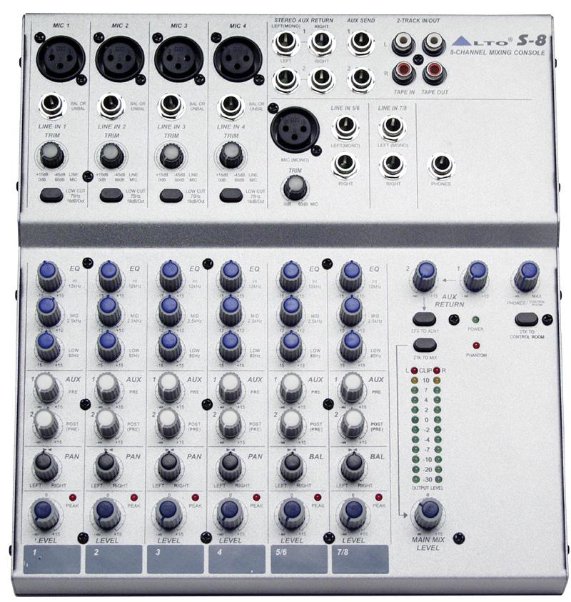 中音S系列提供了高品质的范围内,与6通道高度可移植的混频器16通道型号。 这些专业的调音台都挤满了包括平衡输入和主输出端,本质特征2轨输入/输出,控制室和耳机输出,MUTE/ALT3/4,独奏就地和推子前,听功能。在S系列的高净空设计提供清洁,哼无与投入超低噪音前置放大器性能平衡输入。 48伏幻象电源,金尖XLR连接和通道插入都包含在每个麦克风通道。 一个温馨,自然,音乐动听3频段均衡器,以及前后推杆辅助路由和外部监督作用,使项目工作室S系列和现场音响的理想
