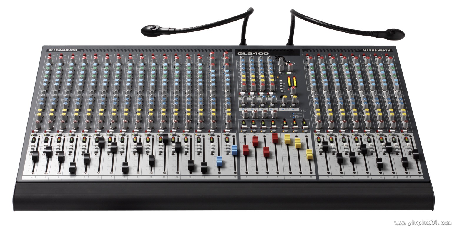 GL2400 机型是一款紧凑型、双功能的、拥有左右信道、单信道叠加、4 编组、6 个辅助通道、7×4 矩阵的调音台。其设计规格从 16 到 40 通道,包括 2 个立体声通道。GL2400 是我们 4 编组产品中最新的版本,同样是非常成功的产品。利用现代工程技术设计出最新的 GL2400,这独一无二但性能强大的小型调音台,我们设计中每一个细节所的都是为了体现更好调音效果。
