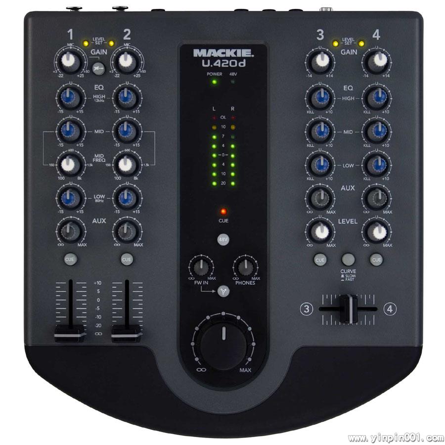 Mackie U.420d是U系列中的一款,U系列4路立体声是目前市场上最简单,最直观的带调音台功能的火线音频接口。该产品的设计满足了音乐制作人、现场扩声、DJ们和的需要,提供了直观和灵活的接线方式,集中且好用的用户界面,也为用户提供了最大的创作空间。