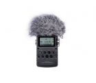 2.将防风罩右下方的拉手向下牵拉,牢固地固定到线性PCM录音棒的麦克风部分上