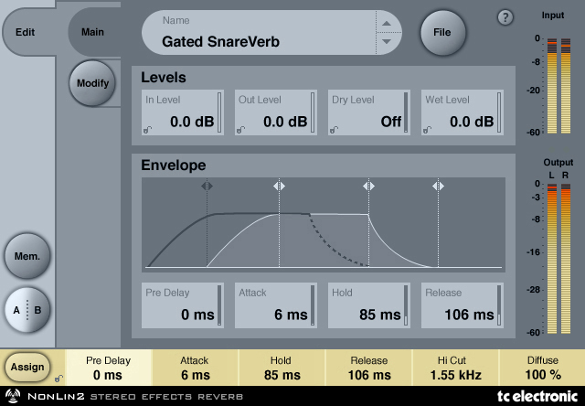 NonLin2是一款效果混响器,与TC传统的自然声混响不同。NonLin2能够产生结实紧密的人声混响,打击乐混响和鼓乐器混响,反相混响和全新的扭曲效果。