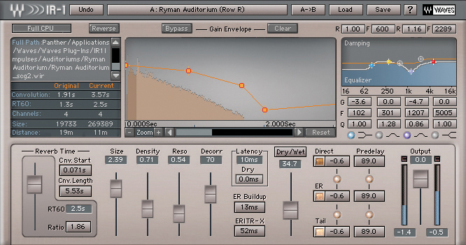 想去英国温布利剧院、美国纳什维尔「老大歌剧院」、雪梨歌剧院、纽约CBGB、或是Birdland听音乐?想要到世界最知名舞台录音?有了IR1一切皆有可能。IR1将这些场景的录音效果,逼真再现。IR1将你喜爱的舞台的音响特征、混响,100%的精准重现。人人都想站上世界中心的舞台,有了IR1,步上那舞台中央的就是你。包括IR1和IRL简化版混响器。